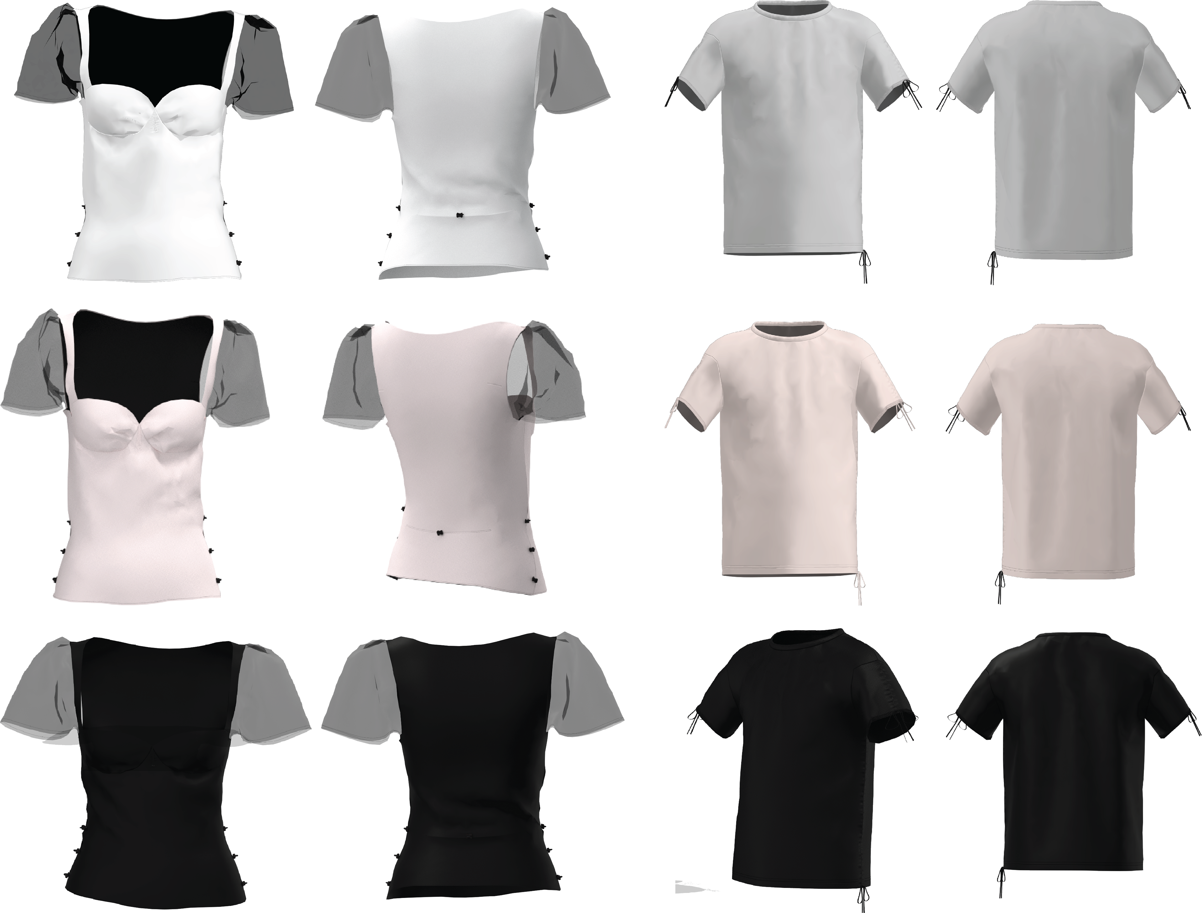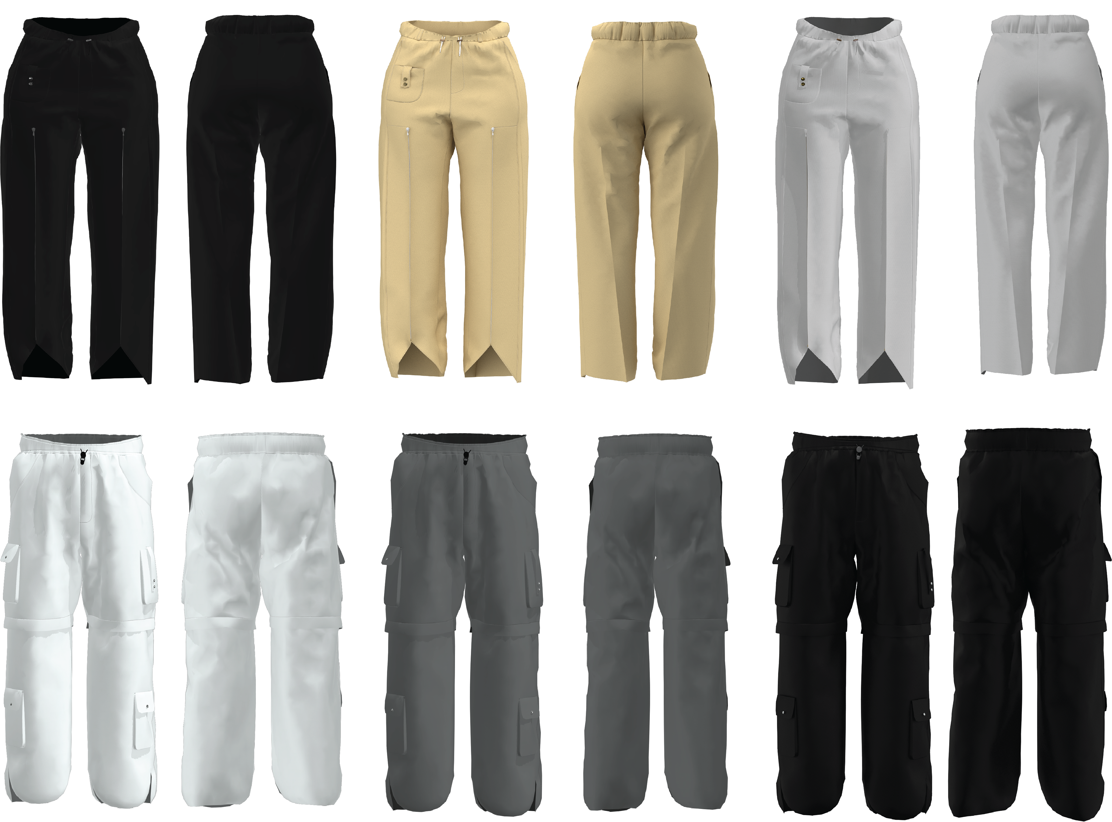 A selection of garments created in CLO3D, showcasing 3D garment construction, digital pattern making, and fit visualization. Each piece reflects a forward-thinking approach to apparel design and development.